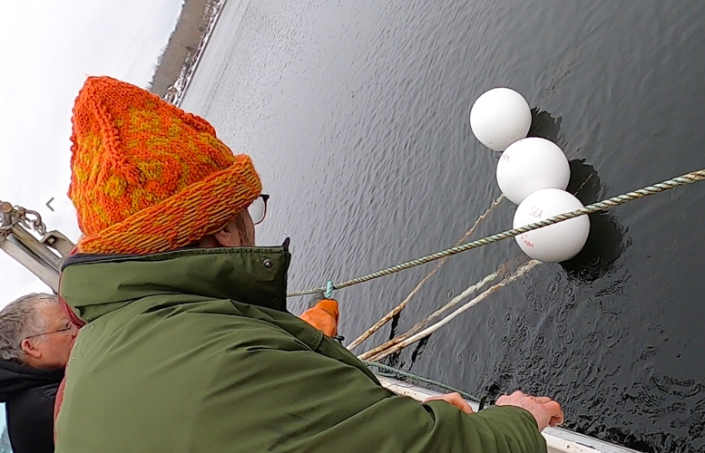 Eventually all three lines were moved back to their original position. No gear had been lost, but some of the tangled kelp lines had been scraped clean of growth. A visual check of the third undamaged line showed good kelp growth, so still in business!